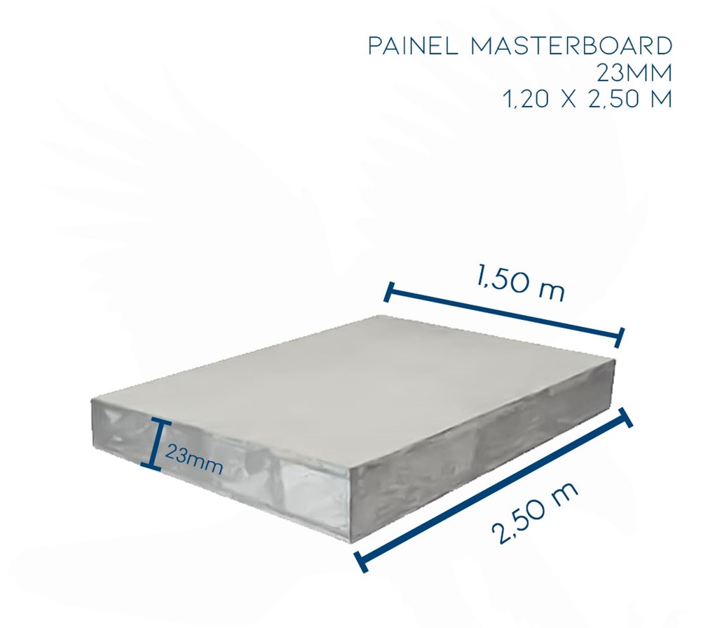 | Composição do Material | Os Painéis Masterboard são compostos de miolo de madeira, revestidos com Placas Cimentícias coladas e prensadas. Eles recebem ainda um tratamento adicional nas bordas, que confere mais resistência e durabilidade. A madeira utilizada, além de muito resistente, recebe um agente cupinicida durante o processo de colagem do painel, o que ajuda a proteger contra ataques de cupins e outros micro-organismos. |