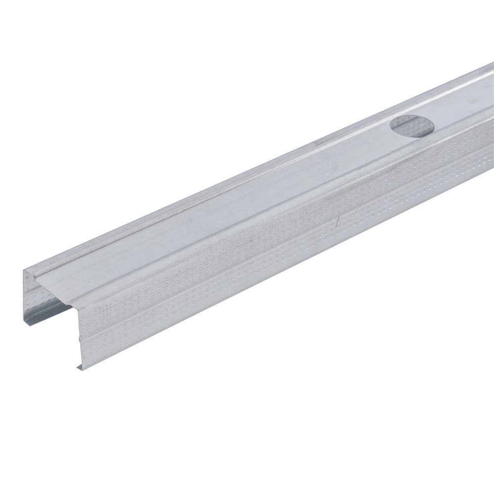 Perfil metálico utilizado para a estruturação vertical de paredes, em revestimentos estruturados e como estrutura horizontal de forros STUD.